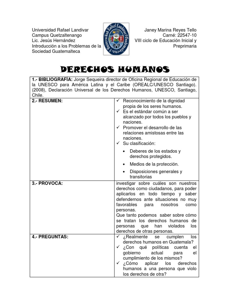 Cuadro De Doble Entrada Derechos Humanos Docx Derechos Humanos