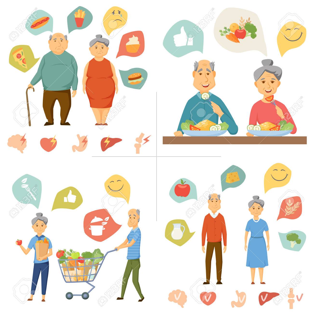 Pareja De Ancianos Infografia De Alimentos Saludables Sana Y La